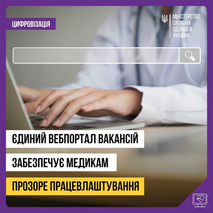 В Україні працює Єдиний вебпортал вакансій у закладах охорони здоров’я
