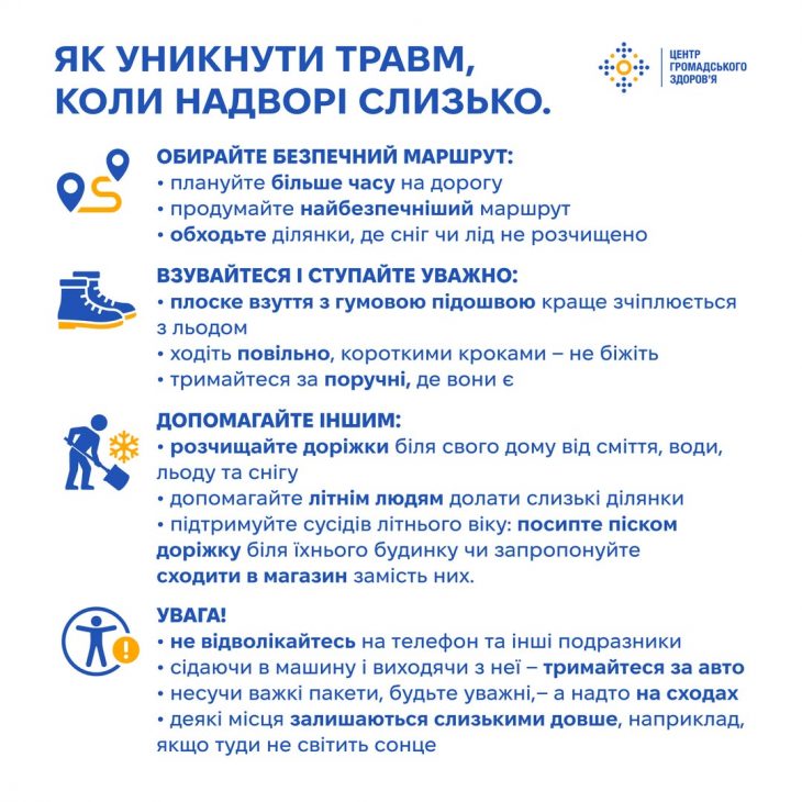 Узимку під ногами слизько за різної погоди, й росте ризик сезонного травматизму