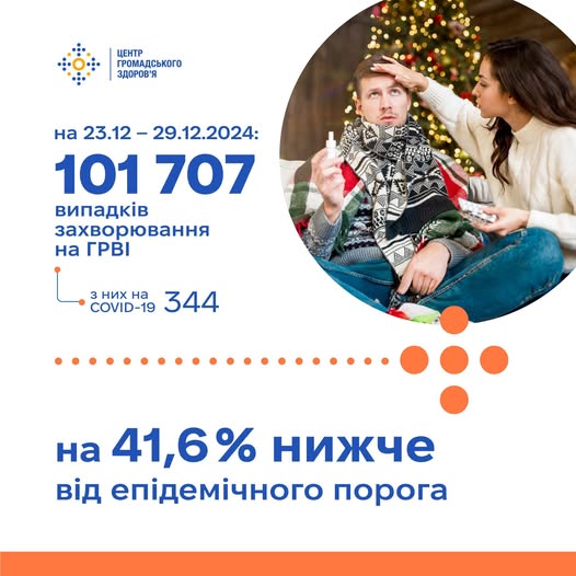 За тиждень епідсезону з 23 до 29 грудня на ГРВІ захворіло 101 707 осіб, з них — 57 771 дитина. У порівнянні з попереднім тижнем, за даними рутинного епідеміологічного нагляду, […]