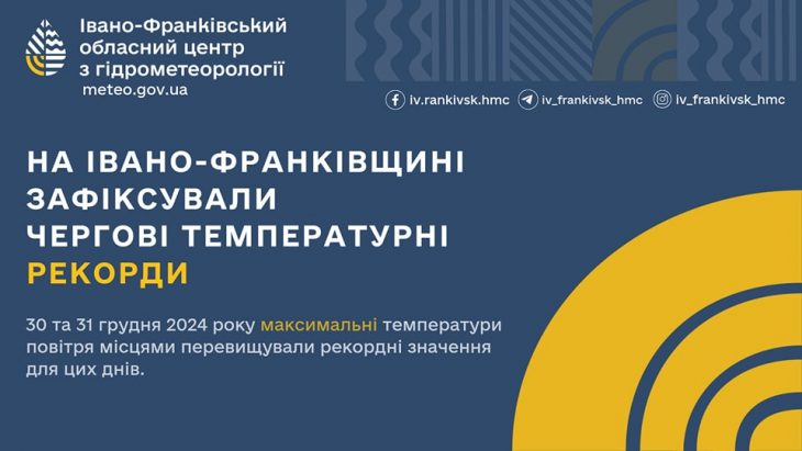 30 грудня 2024р. на СЛ Пожежевська та 31 грудня 2024р. в Івано-Франківську, Коломиї та Яремче максимальні температури повітря перевищили рекордні значення для цих днів. Пише Голос-Інфо з посиланням на Івано-Франківський […]