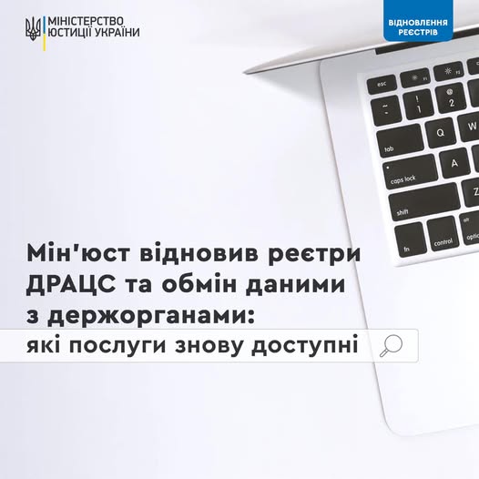 Мін’юст відновив реєстри ДРАЦС та обмін даними з держорганами: які послуги знову доступні