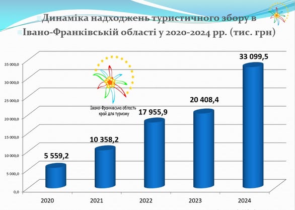 Туристичний збір Івано-Франківської області за 2024 р. – 33,1 млн грн.
