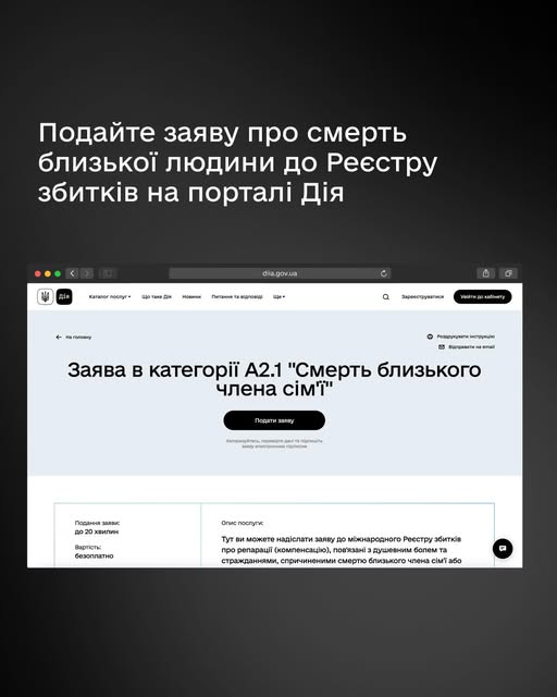 Портал Дія приймає заяви про відшкодування страждань через смерть близької людини в міжнародний Реєстр збитків