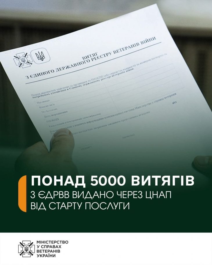 Понад 5 000 витягів з ЄДРВВ видано через ЦНАП від старту послуги