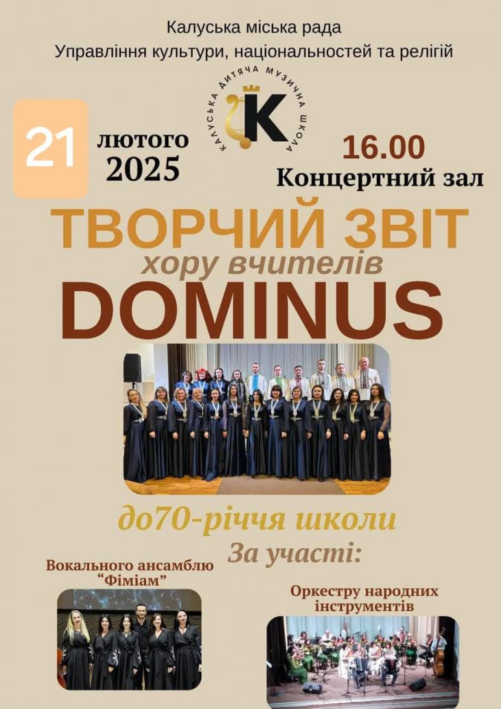 У зв’язку з оголошеними днями жалоби за полеглими Героями, творчий звіт-концерт хору викладачів Калуської ДМШ «Dominus» переноситься