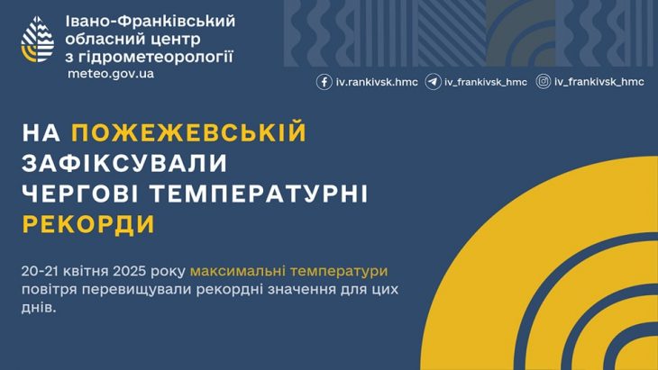 20-21 квітня 2025р. на сніголавинній стації Пожежевська максимальні температури повітря були вищими від попередніх рекордних значень для цих днів. Пише Голос-Інфо з посиланням на Івано-Франківський обласний центр з гідрометеорології Становили: […]