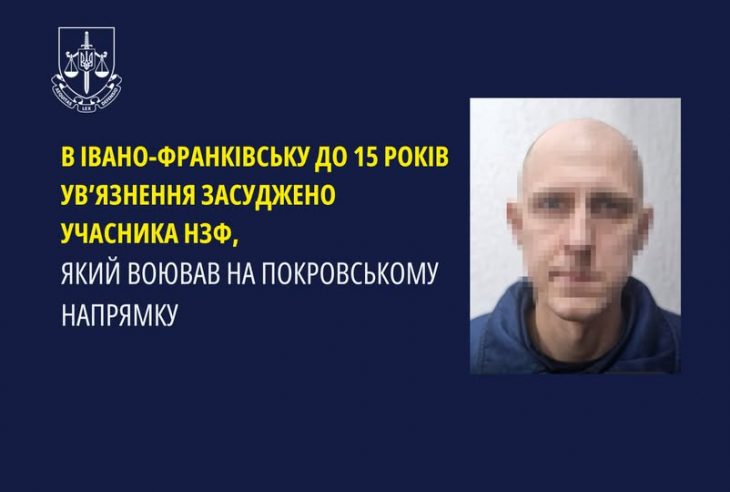 В Івано-Франківську до 15 років за ґратами засудили учасника нзф, який воював на Покровському напрямку