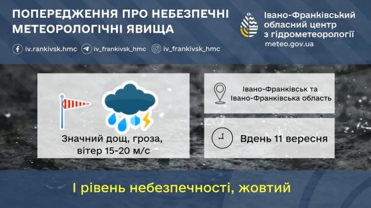 Штормове попередження на Прикарпатті: 11 вересня очікується значний дощ та сильний вітер