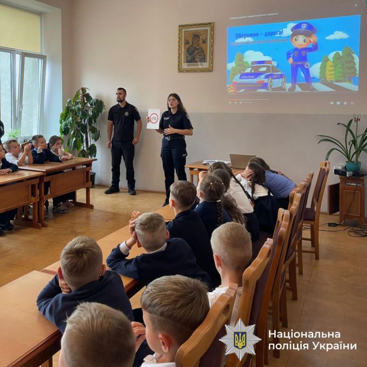 Поліцейські ювенальної превенції Прикарпаття провели заняття для школярів про правила дорожнього руху