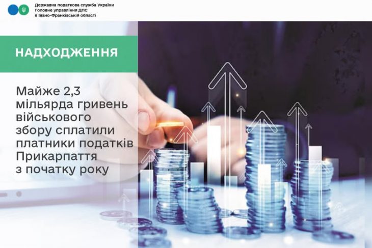 Платники податків Прикарпаття сплатили майже 2,3 мільярда гривень військового збору