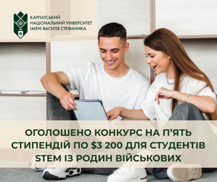 Благодійний фонд «Повір у себе» у партнерстві з Карпатським національним університетом імені Василя Стефаника оголошує конкурс на 5 стипендій розміром $3 200 на рік для студентів STEM-спеціальностей, які є дітьми […]