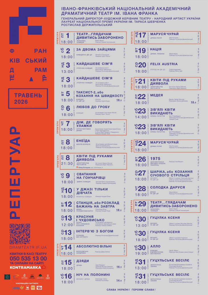 Івано-Франківський драмтеатр оприлюднив репертуар на наступний місяць