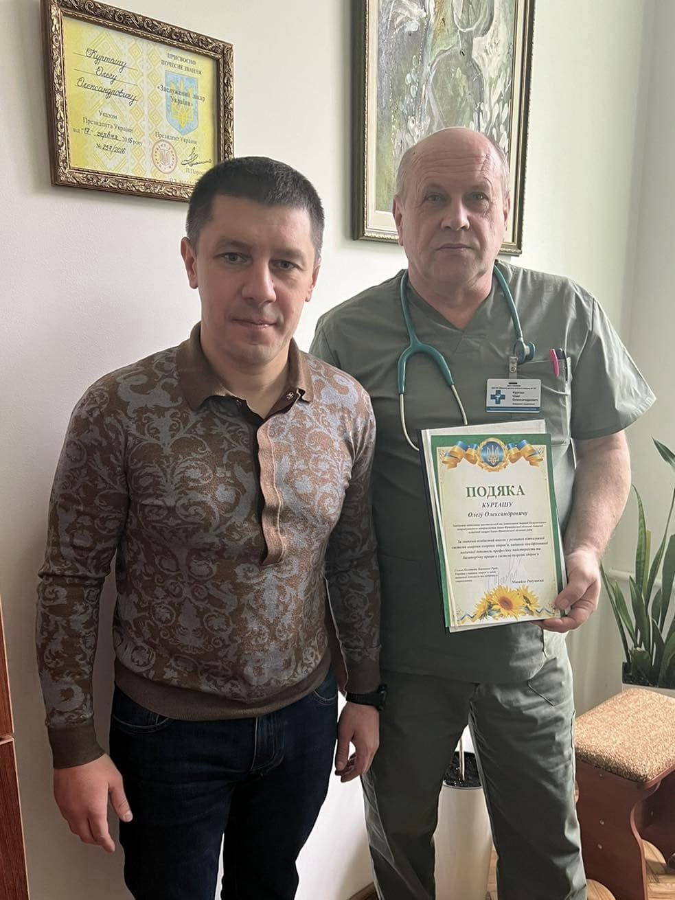 “Окрім того, передав подяку від голови комітету ВРУ завідувачу відділення анестезіології та інтенсивної терапії Олегу Олександровичу Курташу за значний особистий внесок у розвиток системи охорони здоров’я, надання кваліфікованої медичної допомоги, професійну майстерність та багаторічну працю в системі охорони здоров’я”, – йдеться в дописі.