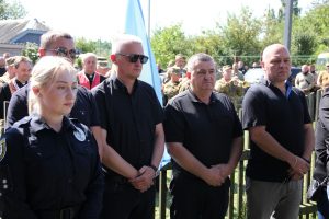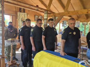 Церемонія прощання завершилася виконанням Державного Гімну України та триразовим залпом автоматів. Жовто-синій стяг, яким була огорнута домовина, поліцейські передали дружині Михайла як вічний символ його подвигу, любові й жертовності — пам’ять про чоловіка, захисника і справжнього Героя України.