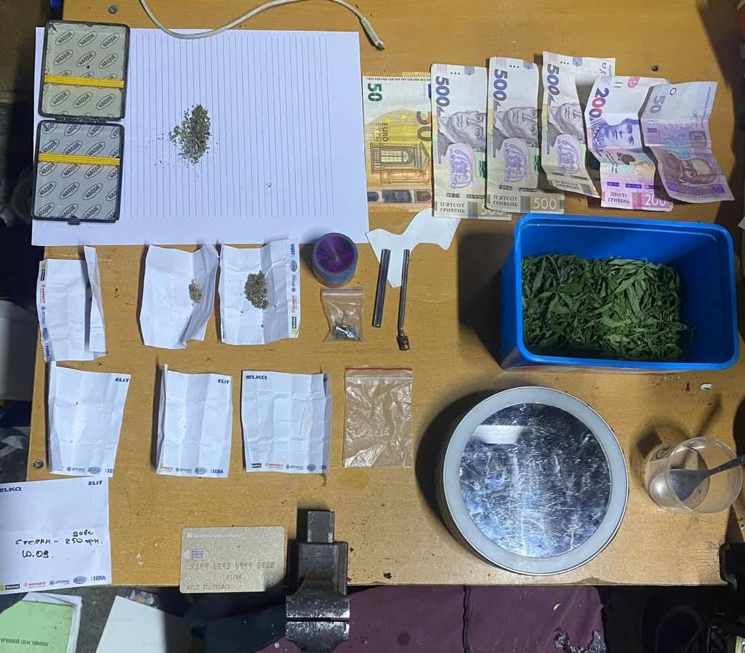 У результаті проведених заходів правоохоронці вилучили майже чотири десятки пакетів з наркотичними і психотропними речовинами, живі рослини канабісу, вогнепальну зброю з боєприпасами та грошові кошти на загальну суму понад 600 тисяч гривень.