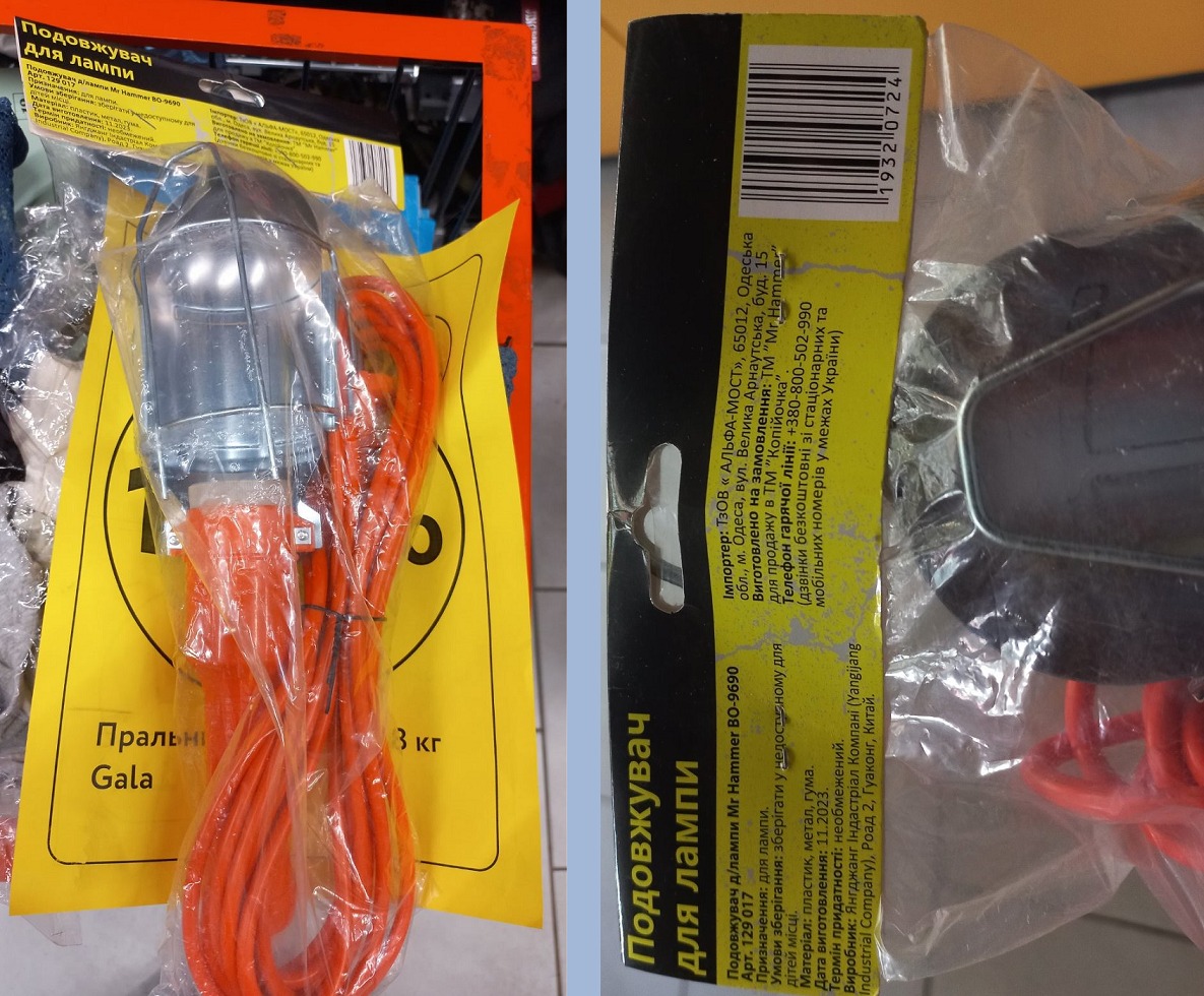 - подовжувач для лампи, ТМ Mr Hammer, BO-9690, арт. 129017, д.в. 11.2023 р., ш/код 19320724, виробник: Китай, імпортер: ТзОВ «АЛЬФА-МОСТ», 65012, Одеська область, м. Одеса, вул. Велика Арнаутська, буд. 15.