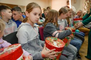 Понад 80 вихованців закладів соціального захисту дітей цілодобового перебування – Долинського обласного центру соціальної підтримки дітей та сімей, Івано-Франківського обласного та Міжрегіонального центрів соціально-психологічної реабілітації дітей напередодні свята взяли участь у пізнавальному дійстві. Для них організували цікаве дозвілля і, звісно, подарунки від Святого.
