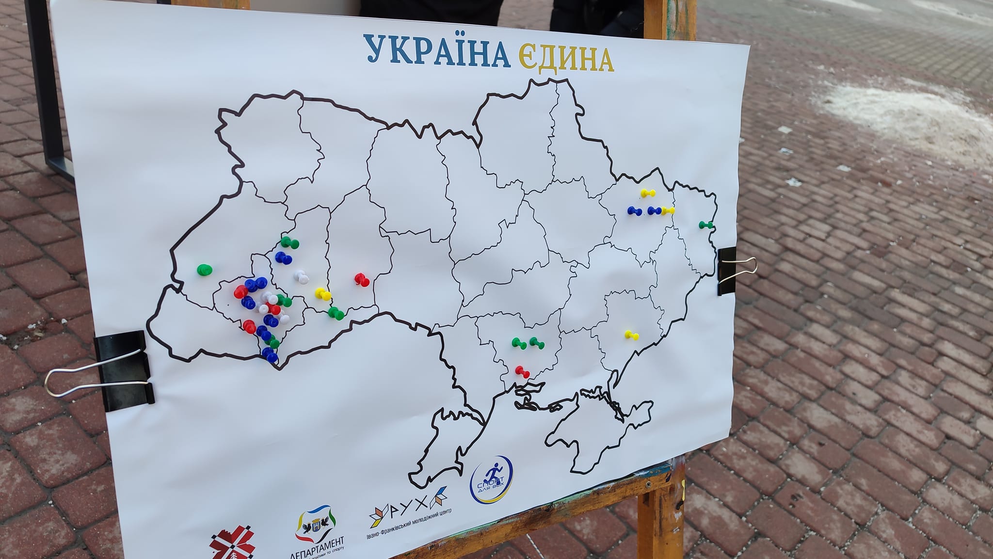 - позначити свій рідний регіон на карті України та у результаті побачити з яких куточків Українці сьогодні проживають в Івано-Франківську;
