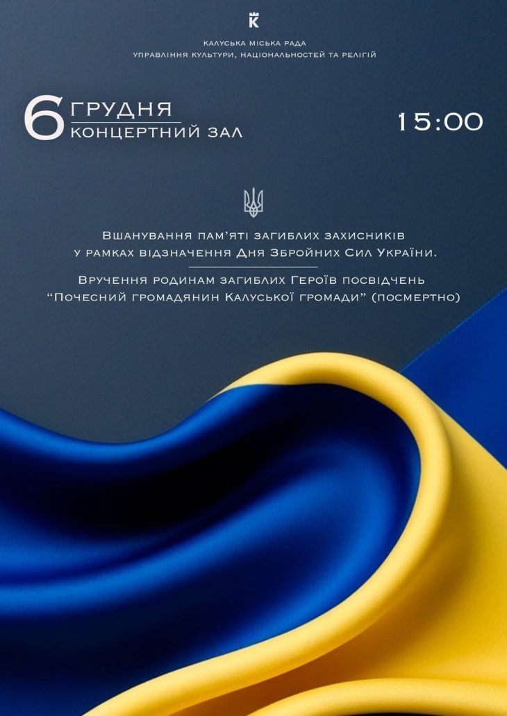 Під час заходу відбудеться вручення родинам загиблих Героїв посвідчень «Почесний громадянин Калуської громади».