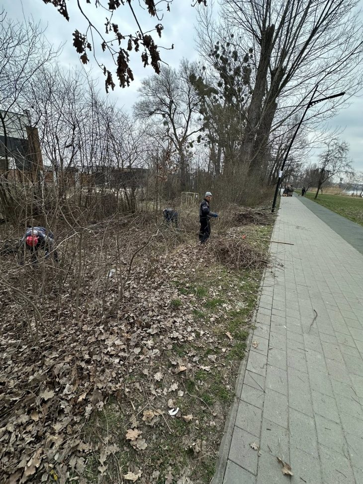 прибирають сміття, сухі гілки, самосів та проводимо формувальну обрізку кущів.