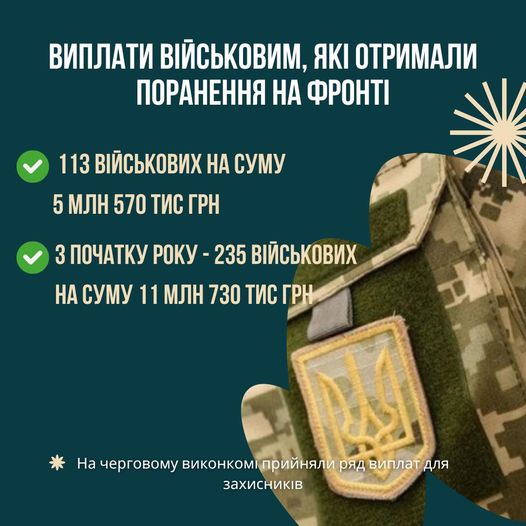 З початку року таку виплату виділили для 235 поранених військових на суму 11 млн 730 тис грн.