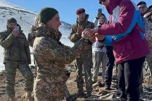 Серед тих, хто йшов до вершини, був Ігор Зобків — військовий, який втратив обидві ноги на війні. Він дійшов до підніжжя вершини та освідчився коханій. Її відповідь — «Так» — зворушила всіх присутніх. Ця мить стала символом незламності духу та любові навіть у найскладніші часи.