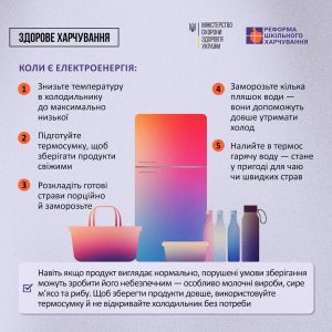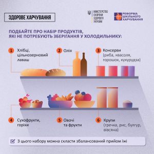 Саме тому Команда шкільного харчування разом із МОЗ зібрали кілька порад – як обрати продукти, що зберігаються довше, як продовжити їхнє життя без холодильника, як готувати, враховуючи темряву, спричинену обстрілами. Це маленькі лайфхаки великої стійкості.