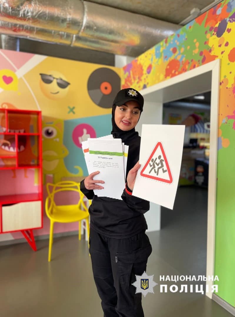 Правоохоронці в ігровій формі розповіли, як пересуватися біля проїжджих частин, безпечно переходити дорогу, а ще продемонстрували основні знаки для пішоходів та велосипедистів.