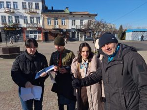 — Ідеєю заходу, як і всього сьогоднішнього дня, є єднання. Тому у командах ми намагалися поєднати мешканців нашого міста, різних за віком, професіями: військові, пластуни, підприємці, волонтери. Кожна із трьох команд-учасниць мала свій маршрут центральною частиною: пам’ятками історії, архітектури, символічними місцями. Придумали запитання, які описували б локації, щоб учасники самі здогадувалися, куди прямувати далі, — розповідає волонтерка ГО «Чисті серця» Ірина Іловлєва.