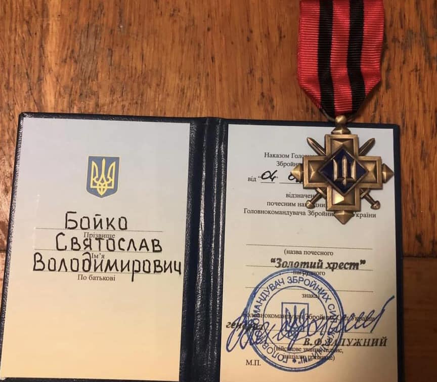 Днями Святослав Бойко удостоєний високої нагороди – «Золотого хреста» від головнокомандувача ЗСУ Валерія Залужного.