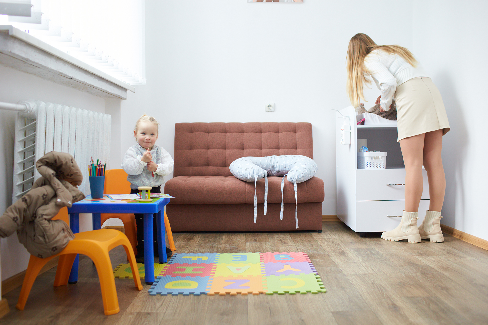 8 ранку і протягом дня мами й татусі з дітками можуть зайти і зробити всі необхідні справи: погодувати дитинку, переодягнути, скористатись вбиральнею чи просто відпочити, погратись та заспокоїти малюка.