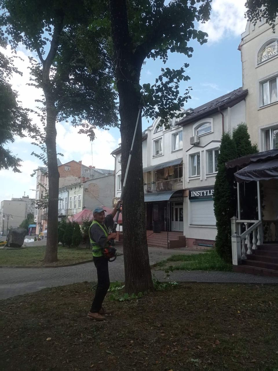 - – санітарну підрізку дерев висоторізом на вул. Шевченка, пл. Героїв;