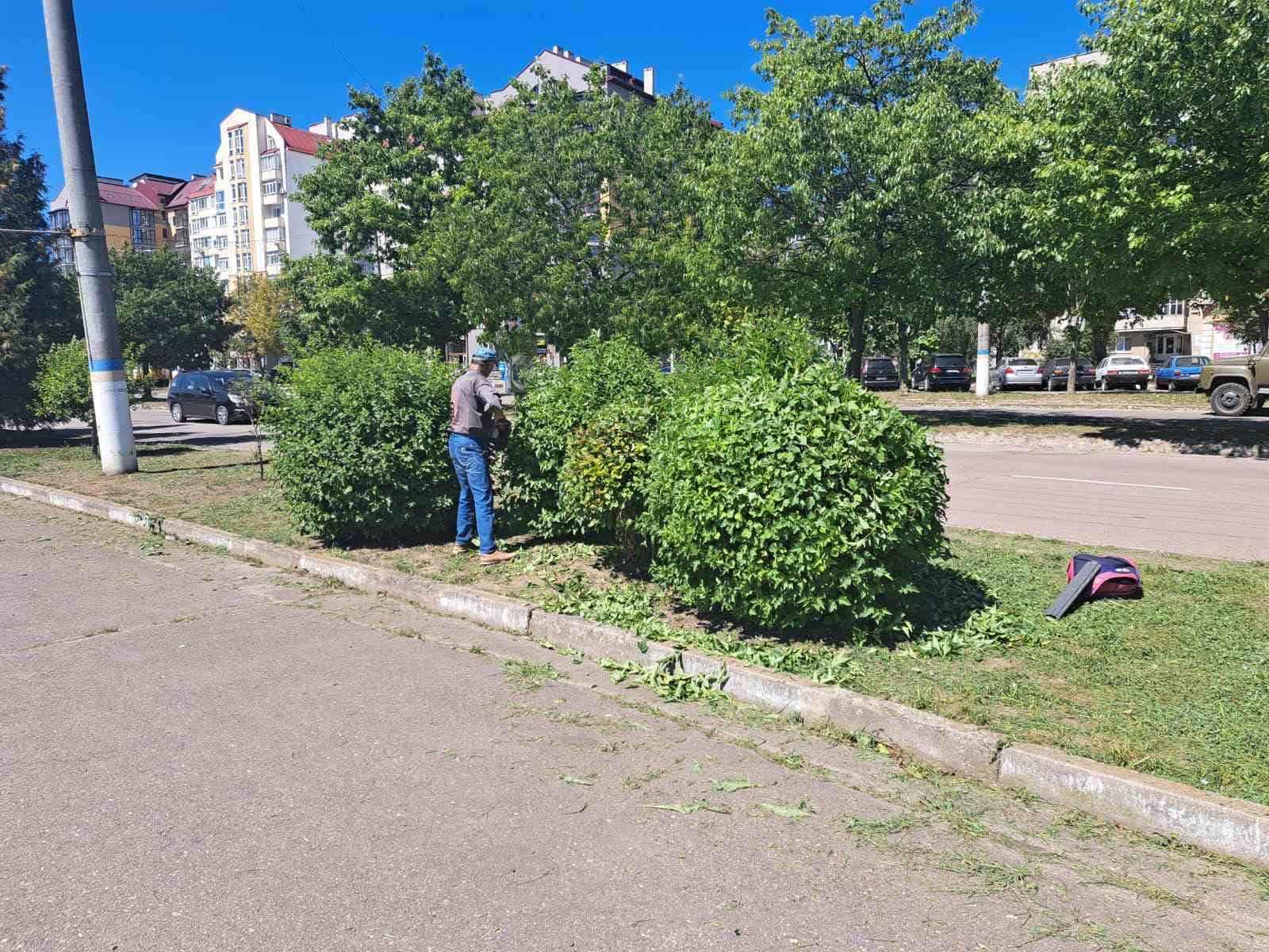 - – викошуванням газонів в скверах та на вулицях: Б.Хмельницького, Литвина, пр. Лесі Українки, вул. Будівельників, Героїв України, Івано-Франківська, б-р Незалежності;