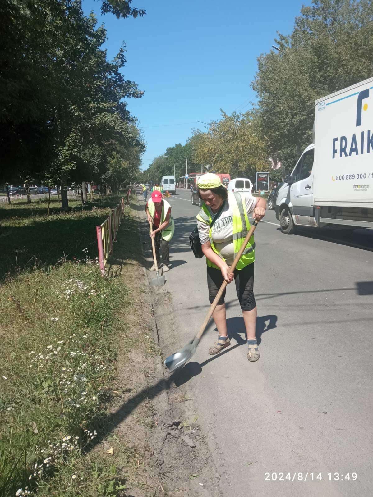 - – викошуванням узбіч та очистку дороги біля бордюр на вул. Б.Хмельницького;