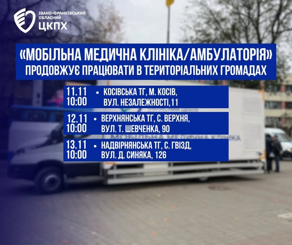 В Івано-Франківській області продовжує функціонувати програма «Мобільна медична клініка», яка надає безоплатні та конфіденційні медичні послуги безпосередньо в територіальних громадах.
