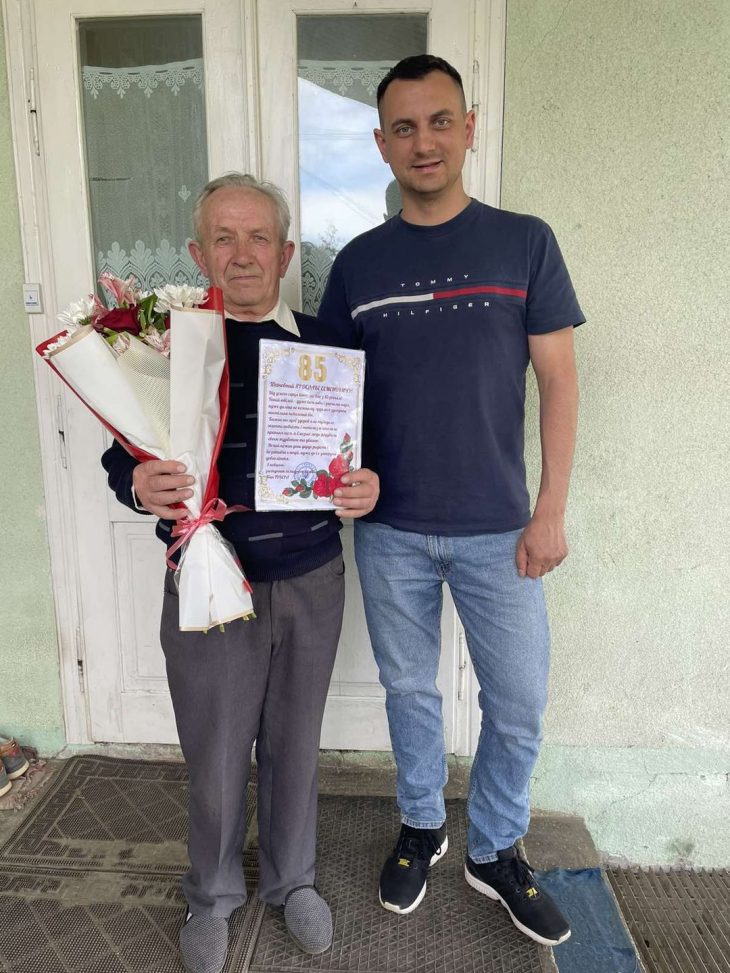 Заступник селищного голови Іван Говера привітав ювіляра, вручив йому вітальну листівку, квіти та матеріальну допомогу від селищної ради.