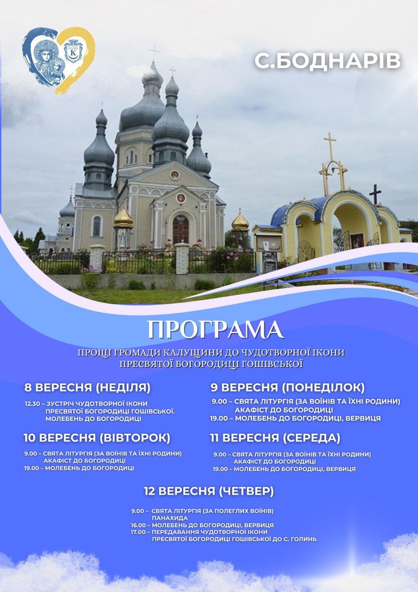 - 8 вересня зустріти та помолитися перед Чудотворною Іконою Пресвятої Богородиці Гошівської матимуть можливість мешканці с. Боднарів.