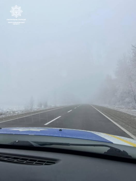 На автошляхах Івано-Франківська та області спостерігається густий туман, що значно погіршує видимість (до 100-500 метрів), тому патрульна поліція закликає водіїв бути обережними.