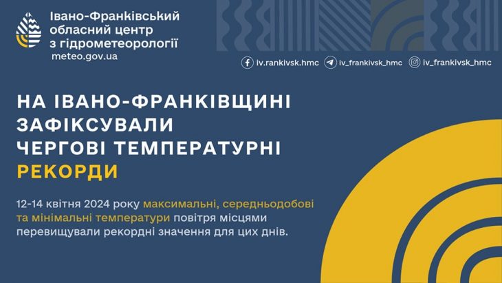 12 квітня 2024р. мінімальні температури повітря в Івано-Франківську та Коломиї були вищими від попередніх рекордних показників та становили: