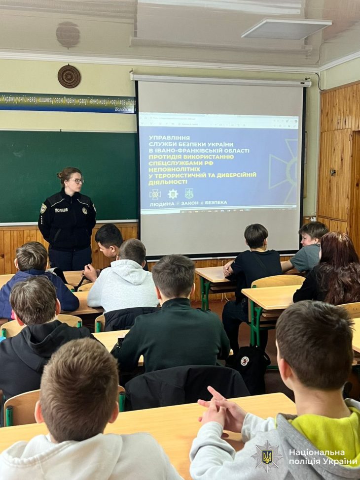 На Косівщині ювенальні поліцейські вчили ліцеїстів розпізнавати вербування в мережі
