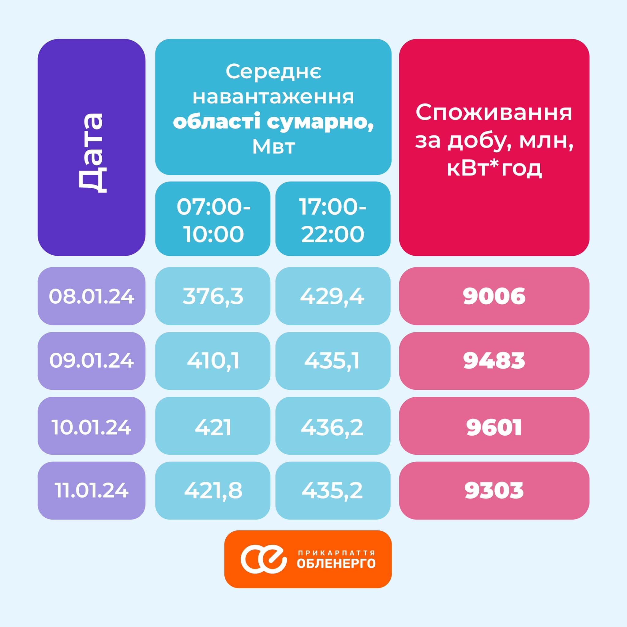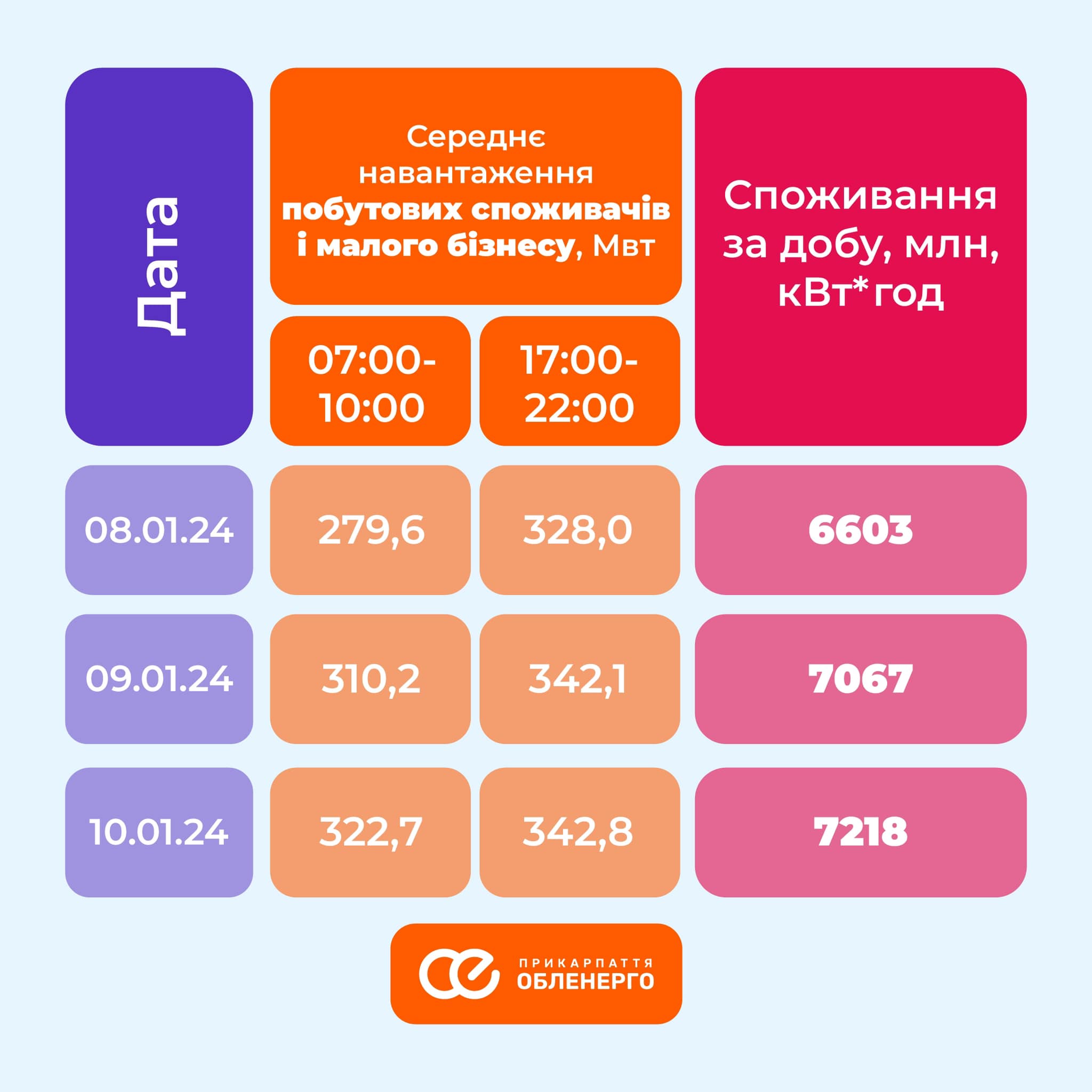 Через це споживання в період 8-10 січня зросло майже на 10%. У зв’язку з тим, що похолодання в Івано-Франківській області ще зберігається, просимо надалі споживати електроенергію економно та за можливості перенести роботу потужних електроприладів в обідній або нічний час