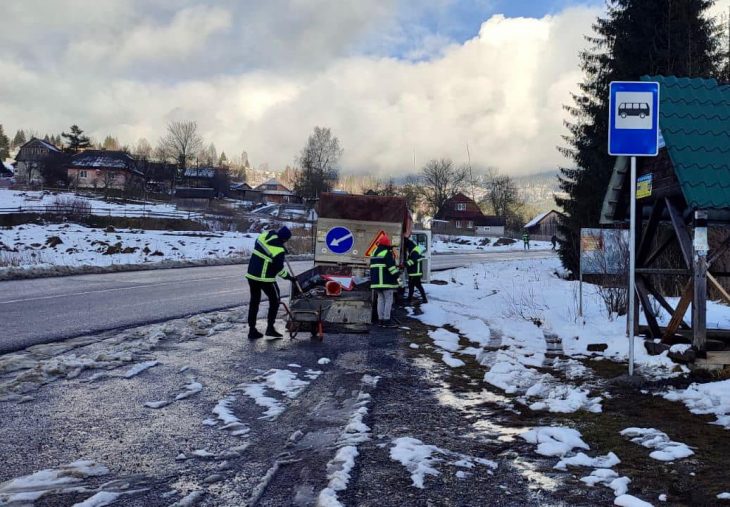 На чотирьох гірських перевалах цілодобово чергують екіпажі. Загалом розгорнуто 13 дільниць, на яких зосереджена чергова спецтехніка, є запаси піщано-сольової суміші.