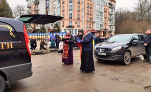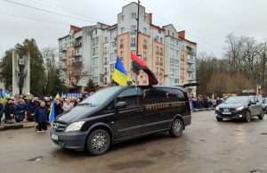 10 лютого тлумачани вийшли на вулиці та в центр міста, щоб попрощатися із полеглим воїном Віталієм Гладюком з села Підвербці Олешанської сільської територіальної громади.