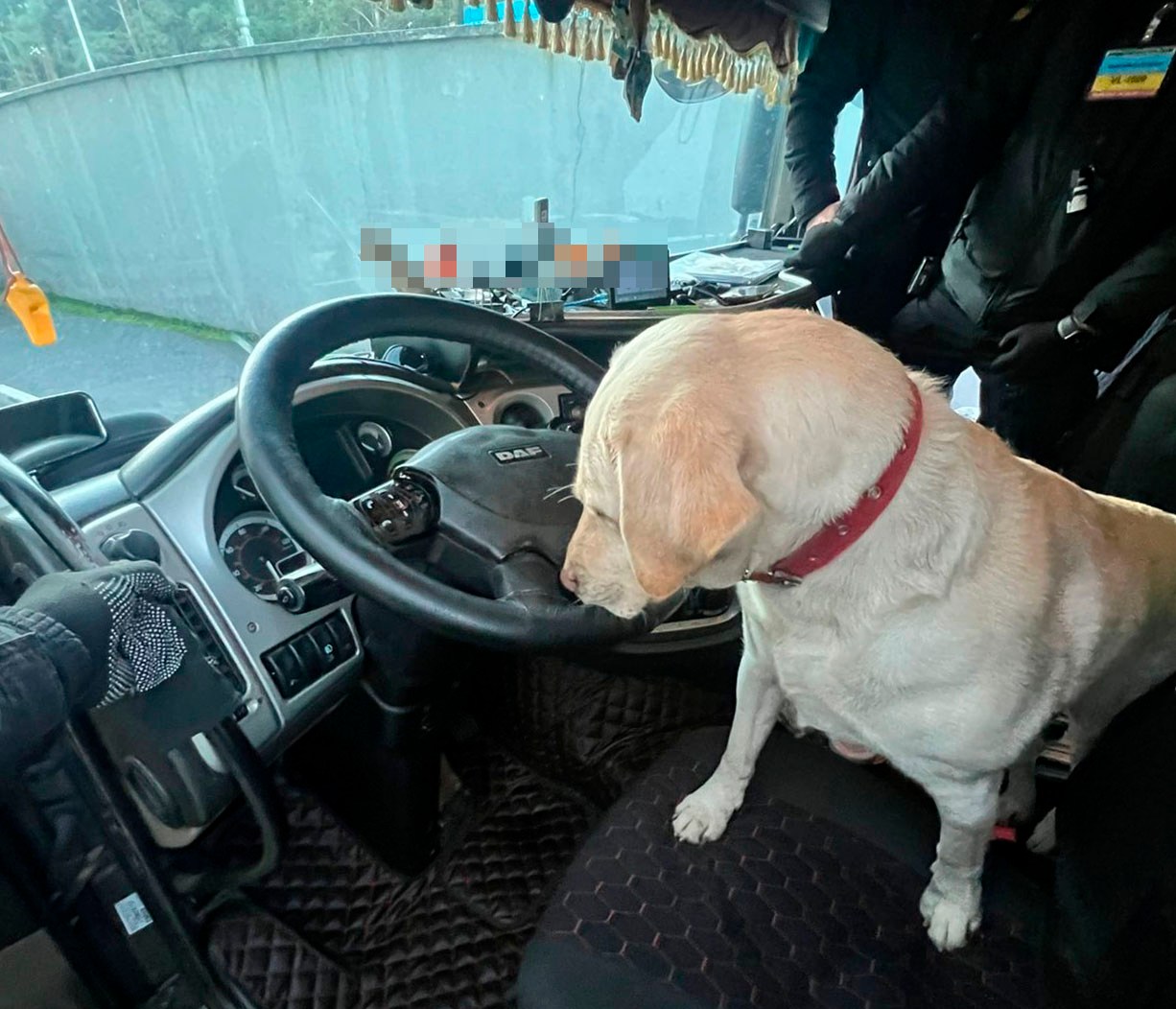 Під час огляду вантажного автомобіля «ДАФ», що слідував на виїзд з України через пункт пропуску «Ягодин», чотирилапа помічниця прикордонників Ельза вказала на наявність наркотиків у кабіні.