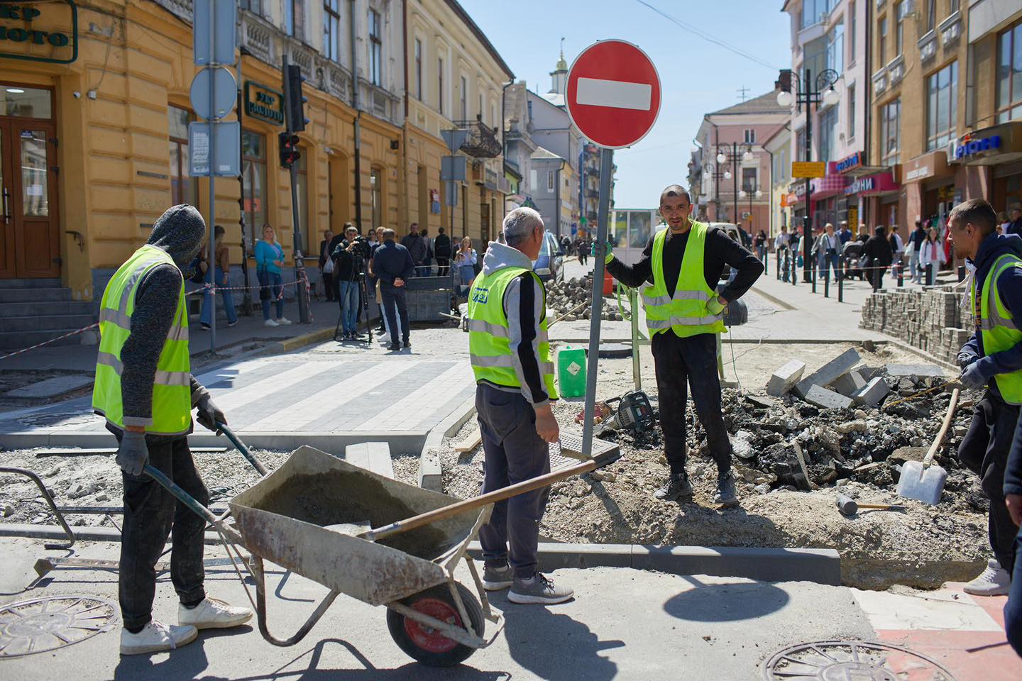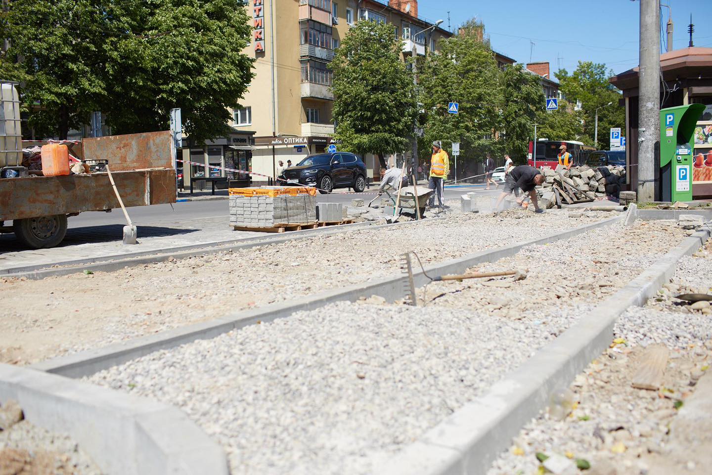 На перехресті вулиць Галицької та Дністровської понижують тротуари та облаштовують пішохідні переходи для зручності людей з інвалідністю, батьків з дітьми та літніх людей.