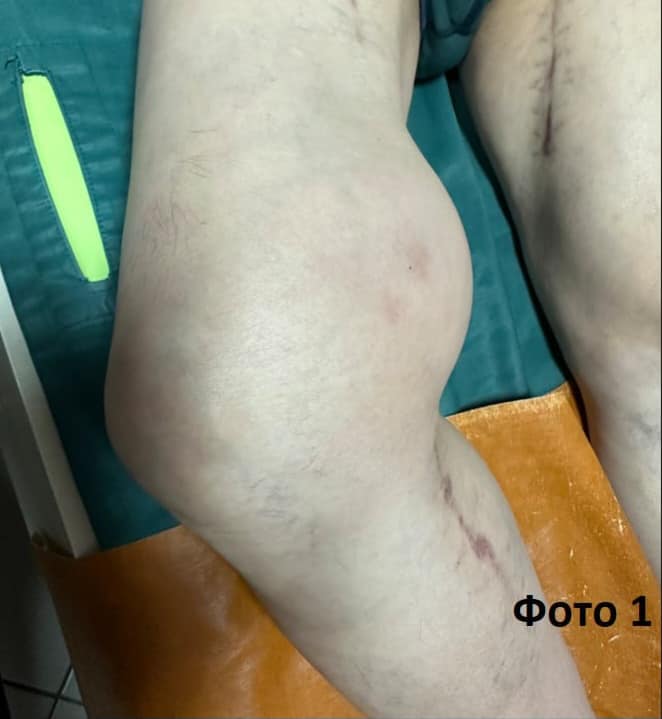 Впродовж року ситуація поступово погіршувалась. В ЦМКЛ після детального обстеження виявили, що аневризма правої підколінної артерії збільшилася до 13 см в діаметрі, займаючи 90 % ширини поперечного перерізу нижньої третини стегна.