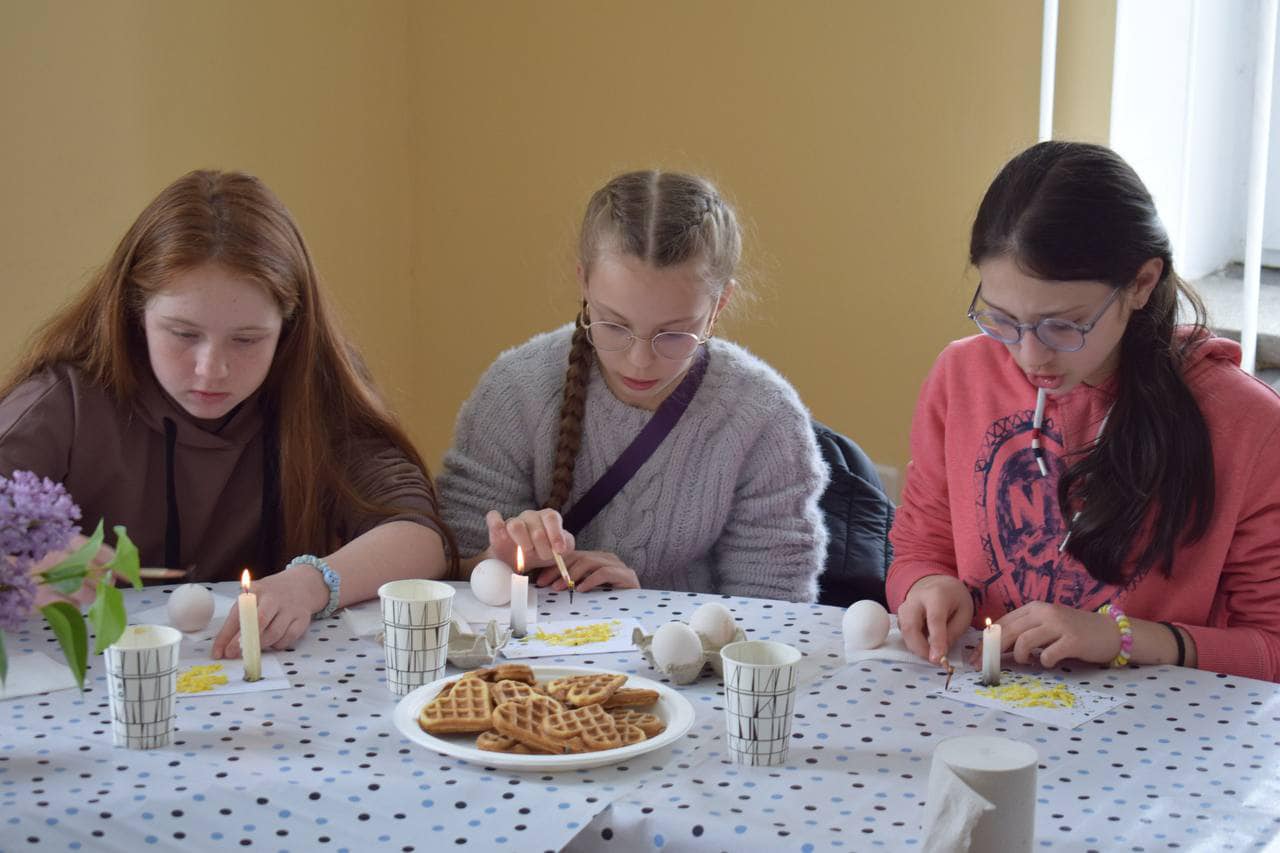 60 дітей захисників вчилися правильно писати писанки за допомогою воску і свічки.