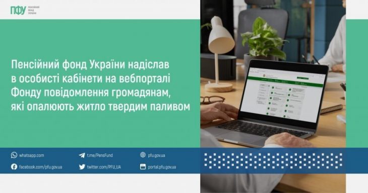 Пенсійний фонд України надіслав в особисті кабінети на веб-порталі Фонду повідомлення громадянам, які опалюють житло твердим паливом