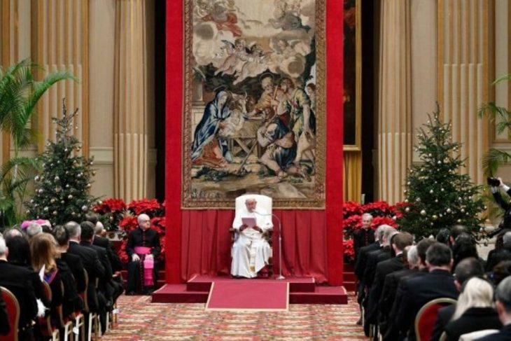 У традиційному зверненні на початок року до послів, акредитованих при Святому Престолі, понтифік перерахував проблеми, які згубно впливають на людство, згадав про трагедії, які знекровлюють різні частини світу, наголосивши на тому, що дорога до миру проходить через пошану прав людини, першим з яких є пошана до життя, через суспільно-політичний і міжрелігійний діалог, та через інвестиції в освіту. Він також перестеріг перед ідеологічними колонізаціями, вказуючи на небезпеку гендерної ідеології, і наголосив на необхідності етики в розвитку технологій.