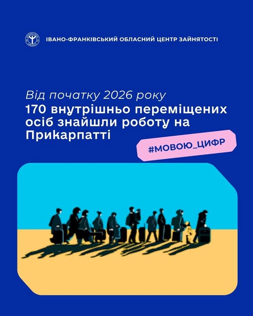 Підтримка ВПО на Івано-Франківщині: понад 170 працевлаштованих та сотні залучених до роботи і навчання у І кварталі 2026 році